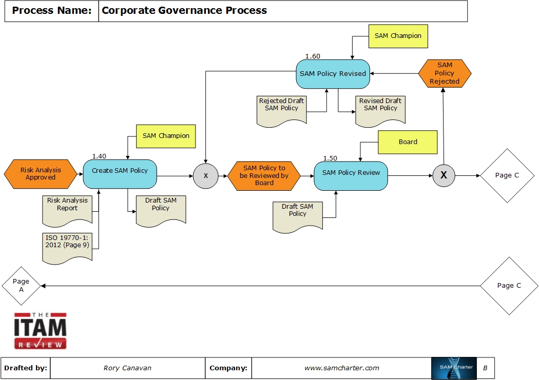 The eventual landing spot of any revisions to the SAM Policy is a subjective one; I placed it at the point where another risk assessment took place as otherwise a SAM Policy could run the risk of being isolated from the business and address risks that were highlighted perhaps 3 or 4 years ago and so fail to keep pace with current management beliefs as to where risks currently reside. Some might argue that such revisions could side-step another risk assessment and feed back into the process prior to function step 1.40.