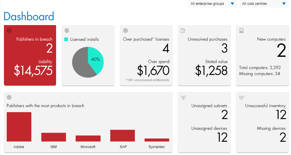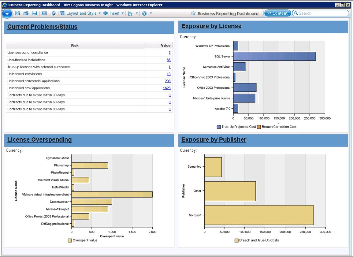 In addition to the Adobe discovery and recognition features above, FlexNet Manager for Adobe also provides management of Adobe Contracts and advanced reporting and trend analysis.