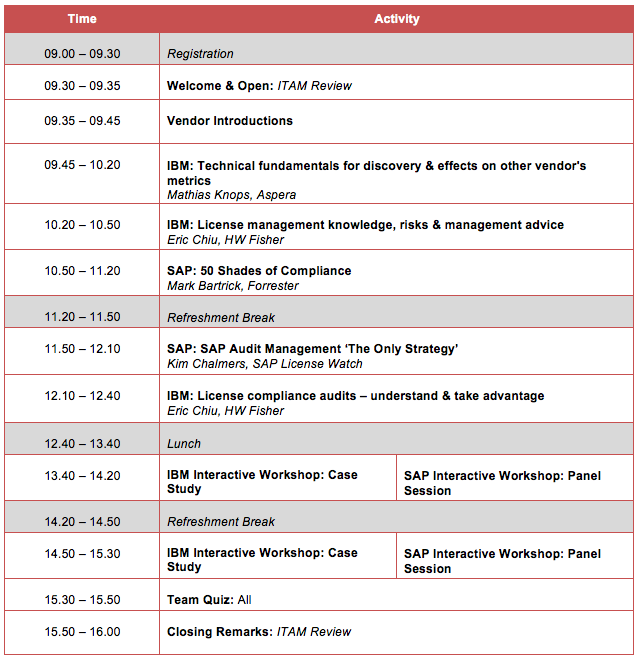 This seminar will cover the key issues of IBM and SAP licensing and will include expert industry speakers, interactive workshops and the chance to network with like-minded peers who are addressing similar issues.